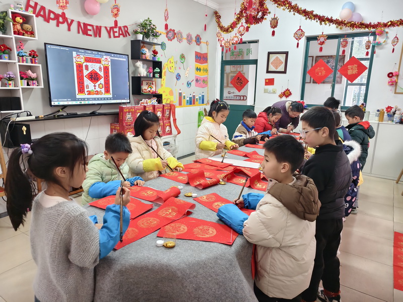 在应曼雯老师生动有趣的讲解中,孩子们不仅学习了春联的对仗知识,更懂得了“福”字背后那份团圆安康的美好寓意。